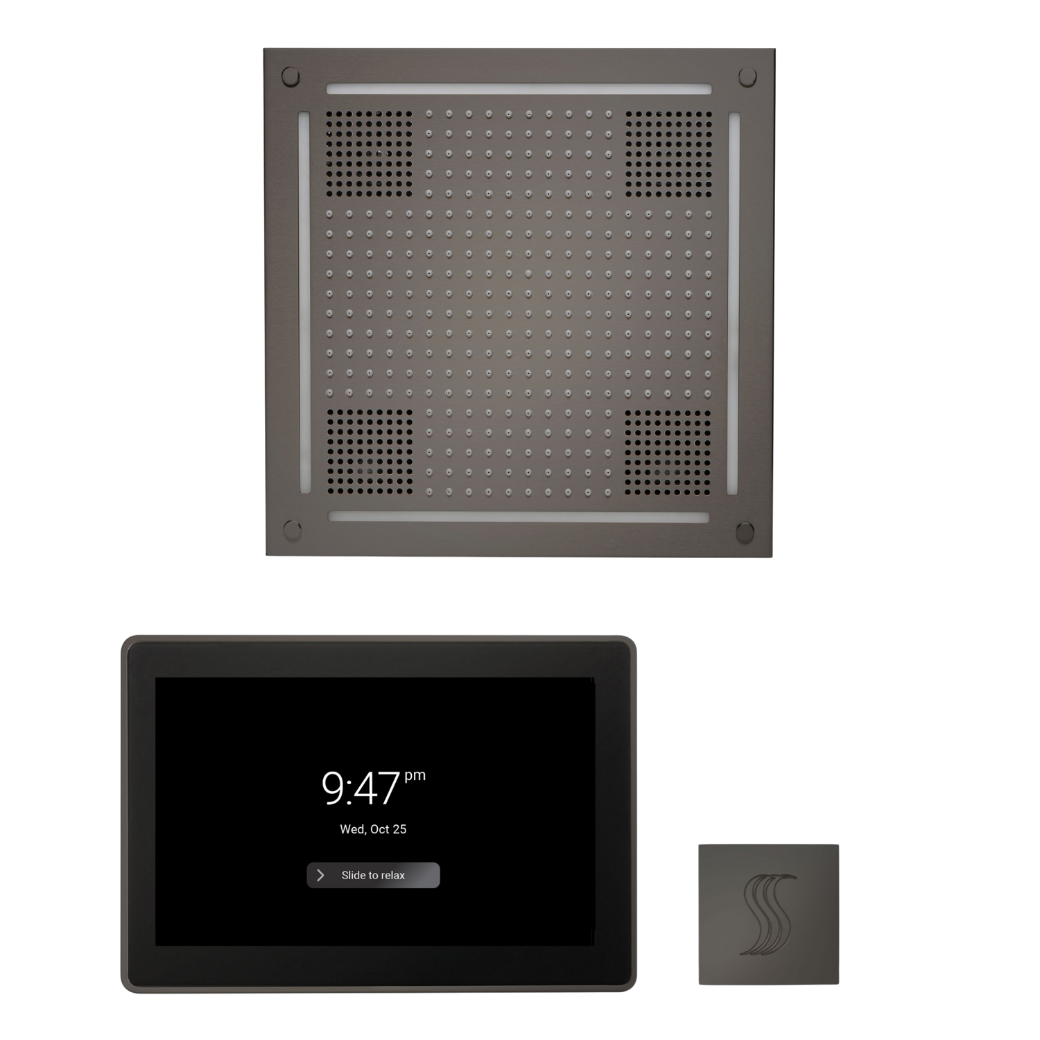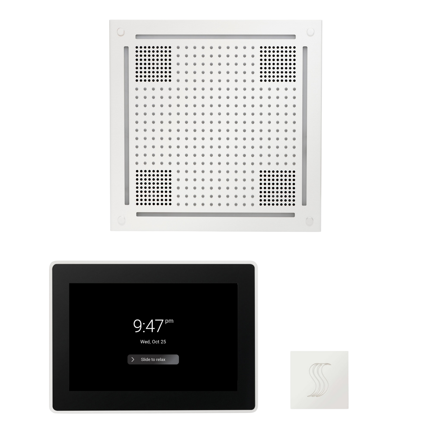 ThermaSol WHSTP15S Wellness Steam Package - HydroVive 18 Rainhead + ThermaTouch2 15" Control + SteamVection Square Steam Head