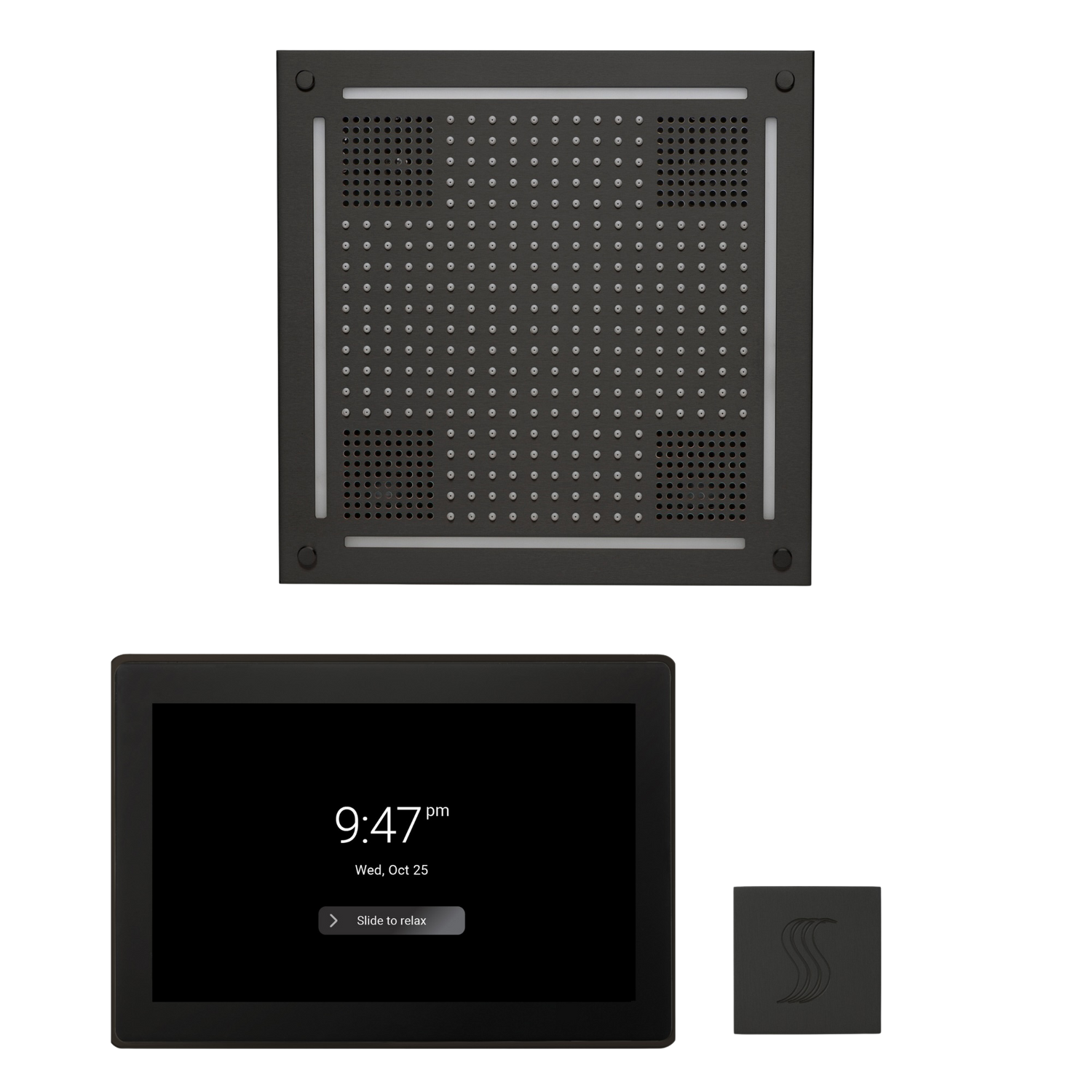 ThermaTouch2 15" Control - ThermaTouch2 is ThermaSol's most advanced smart control, featuring a sleek 15" capacitive touchscreen, Android-powered interface, and built-in Bluetooth for a fully connected, multi-sensory experience. Designed to manage every element of your shower environment, it gives you intuitive command over steam, temperature, lighting, sound, and ambiance. Compatible with HydroVive rainheads, PRO Series III generators, and the Digital Shower Valve, it also offers access to Tranquility Scenes, top streaming apps, Alexa activation, Wi-Fi connectivity, and customizable user profiles. ThermaTouch2 15" is our largest, most powerful control, featuring a sleek new Android-powered interface for the most advanced and intuitive user experience.