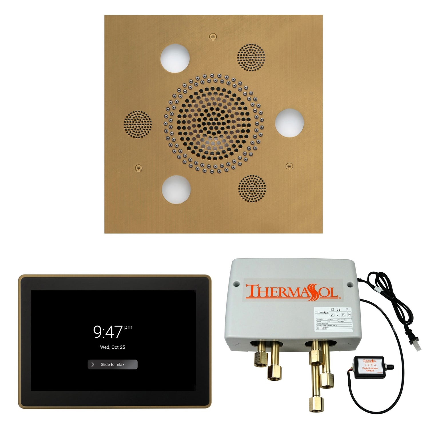 ThermaTouch2 15" Control - ThermaTouch2 is ThermaSol's most advanced smart control, featuring a sleek 15" capacitive touchscreen, Android-powered interface, and built-in Bluetooth for a fully connected, multi-sensory experience. Designed to manage every element of your shower environment, it gives you intuitive command over steam, temperature, lighting, sound, and ambiance. Compatible with HydroVive rainheads, PRO Series III generators, and the Digital Shower Valve, it also offers access to Tranquility Scenes, top streaming apps, Alexa activation, Wi-Fi connectivity, and customizable user profiles. ThermaTouch2 15 is our largest, most powerful control, featuring a sleek new Android-powered interface for the most advanced and intuitive user experience.