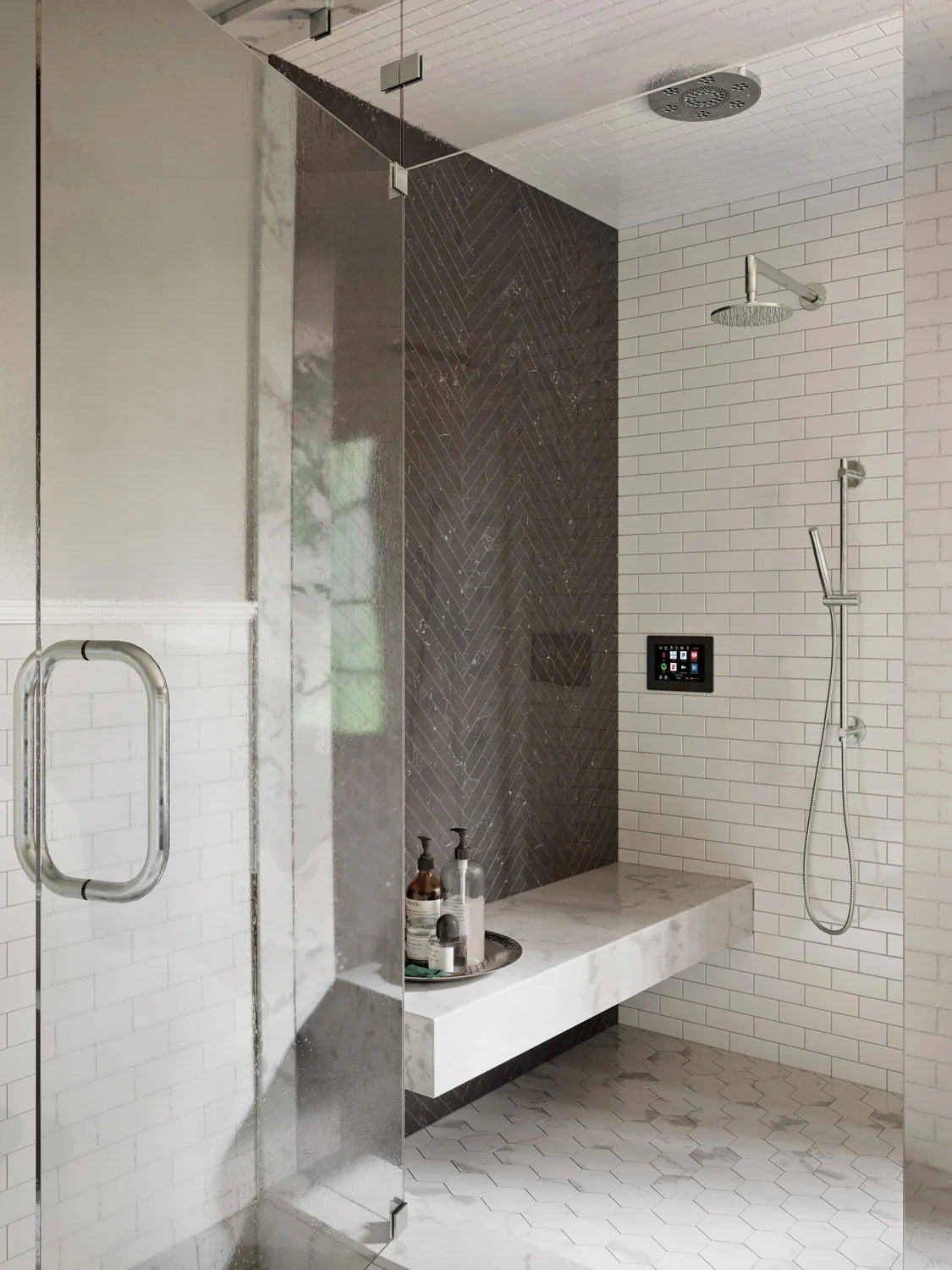 ThermaTouch2 is ThermaSol's signature smart control, designed to bring total customization to your shower experience. With a sleek touchscreen and Android-powered interface, it puts steam, temperature, lighting, sound, and ambiance at your fingertips. Seamlessly compatible with HydroVive, PRO Series III, and the Digital Shower Valve, it also offers Tranquility Scenes, streaming apps, Bluetooth audio, Alexa activation, and personalized settings. ThermaTouch transforms your bathroom into a fully connected wellness retreat.